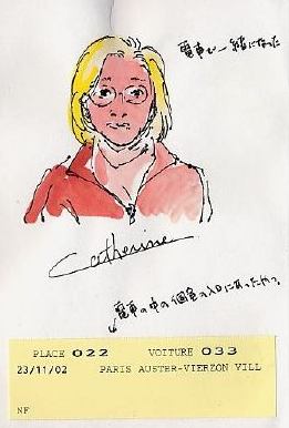 電車の中で一緒のボックスになったので、似顔絵を描かせてもらいました。