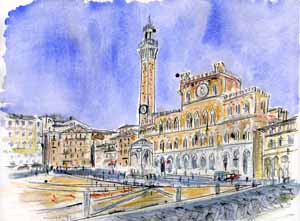 最後にフィレンツェを訪れる予定でしたが、ここで急遽、団長の予定変更提案発言があり、多数決でシエナに行くことになりました。シエナはフィレンツェと同じトスカーナ州で、彫刻的な街並をしており、年に2回行われるパリオ(シエナの伝統行事であり、カンポ広場で催される競馬)が有名な街です。