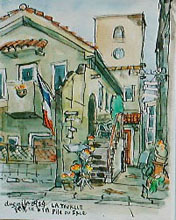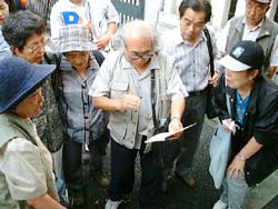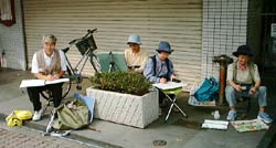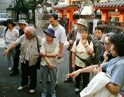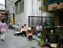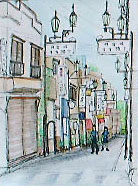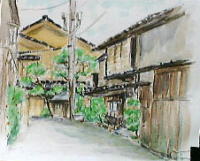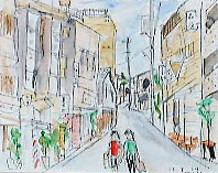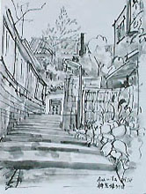 2000年9月24日(日)、神楽坂一帯で「神楽坂まちなみスケッチ会」(東京を描く市民の会・第107回例会)が、東京を描く市民の会と神楽坂地区まちづくりの会の共催で開催されました。当日は朝まで続いた雨にも関わらず、10時には集合場所となった毘沙門天(善国寺)に手に手にスケッチブックや簡易椅子を手にした市民が集まりました。 |