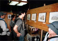 17時からはオープニングパーティがスタート。諏訪市民と来訪者が和やかに歓談しました。全員が自己紹介とともに発言し、その中で美術塾講師の仲澄江さんは「舞姫酒造で、古い建物を傷つけず見事にパネルを作って展示してあるのを見て、諏訪の皆さんはなんて心の優しい人たちなのか、と感激した。建築士会はじめ皆さんの心配りによって、私たちは諏訪を満喫できました」と語り、大きな拍手を受けました。