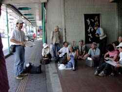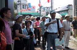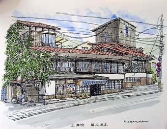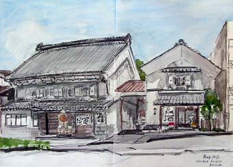 ◆天候に恵まれとても気持ちの良いツアーとなりました。諏訪のスタッフの皆様、心より感謝いたします。今回も、とても心に残るよいツアーでした。すでに、HPに立ち上げてある参加者の中の意見にもありましたが、舞姫酒造さんの展示の仕方も工夫を凝らしていましたし、階段や床板の補強も流石だなーと感心しました。地方で展覧会をする意味ってとても大きいと思います。また、朝採りの新鮮な茗荷もたくさんありがとうございました。(宮城・女性) ◆アユミギャラリーの方々、諏訪の建築士会の皆さん、さまざまなセッティングに感謝と賞賛を送ります。本当にありがとうございました。妻の実家が富士見ということで、富士見・諏訪・原村・小淵沢と沿線には懐かしさと第二の故郷との思いを持っています。写真や写生が好きで、遊びに来ては界隈を歩いていますが、今回は地元の方々の温かい道案内で今まで素通りしていた街並みや古い家屋を紹介され、再び訪ねたいと思いました。私自身、東京生まれ、東京育ちで、山や緑や農家など、ごくごく自然なところが好きですが、都心部にも、目を凝らして探すと昭和初期や戦前の風景に出会うことを心がけています。自分の身の回りには、樋口一葉女史の終焉の地や、金を借りた質屋(伊勢屋)や住居跡などがあり、出来るだけ残したいと思います。これからも近代建築史への旅スケッチ会には、仲間からそして先生から一杯良いところを盗んで、うまく、楽しくスケッチしていきたいと思います。最後に、諏訪の建築士会の皆様、ありがとうございました。(東京都・男性) ◆諏訪は何回か来たことがあったが、街歩きをしたのは今回がはじめてで予想以上に街並が残っていて楽しい一時を過すことができた。ただ、湖畔の観光地にくらべて街中は人があまりいず、車だけが通過している状態で、店もシャッターがしまっているのは残念だった。今回スケッチした食堂魚安は木造3Fの趣のある建物で窓のデザインが特に目を引いた。空家になっているとのことなので今後が少し心配である。2日間とも晴れてよかった!!東京はもっと暑かっただろうな……(東京都・男性) ◆初めて、参加させて頂きました。